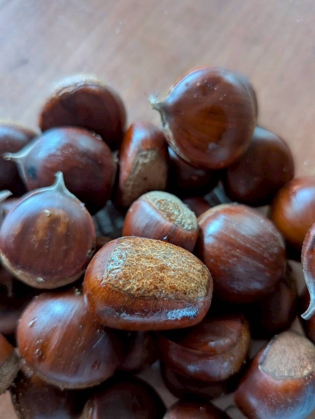 秋の風を感じる季節になってきましたね。山の上では只今せっせっと山栗を剥いております。今年の山栗もまるまるの良い出来です。しっかり追熟させたので、更に山栗の甘さupしております。そんな山栗と金沢の白あんとほうじ茶でつくったパウンドケーキです。 カット(ハーフ・4枚・8枚)売りも可能です。また配送の際のカットも可能ですので、ご希望がございましたらご連絡ください。 【内容量】 1個 【サイズ】 14x8cm クグロフ型 【原材料】 小麦粉・塩・きび砂糖・山栗、白あん、ほうじ茶 【賞味期限】 製造日から4日 冷凍2週間 保存量など入っておりませんので、開封後はお早めにお召し上がりください。 また、保存の際は高温多湿を避け冷蔵での保存をお願い致します。