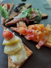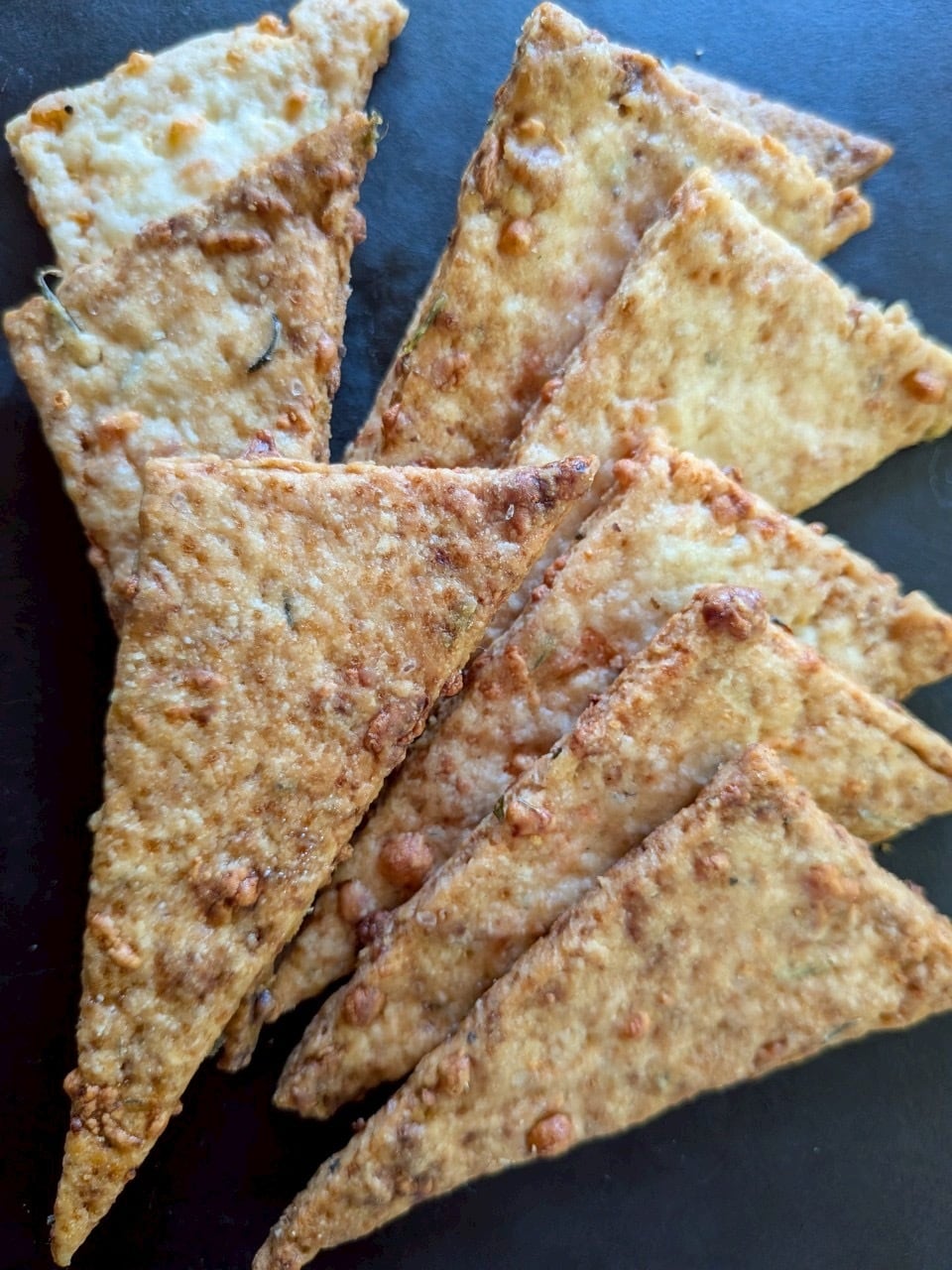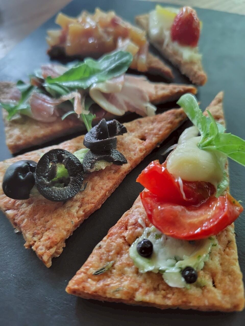 ハーブチーズクラッカーハーブは自家栽培(タイム、ローズマリー、オレガノ)。勿論そのままでもok。mushamushaのお店ではオーダーで作って頂いたパンチェッタや生ハム、自家栽培のルッコラやバジル、サニーレタス、などを使用してカナッペにて提供しております。色々な使い方が出来るクラッカー。1度お試しあれ!!