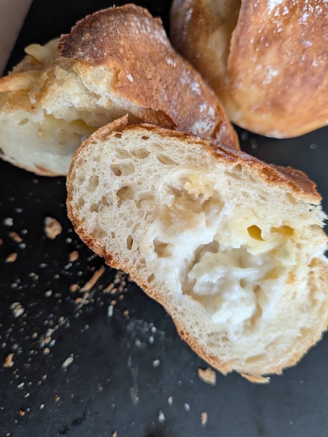 プレーンは勿論そのままでもok。上の部分を切って中身を出し、お惣菜系やチョコやカスタードなど甘いもの系等何か詰めて頂いてもok。ちょっとしたおもてなしにも大活躍。