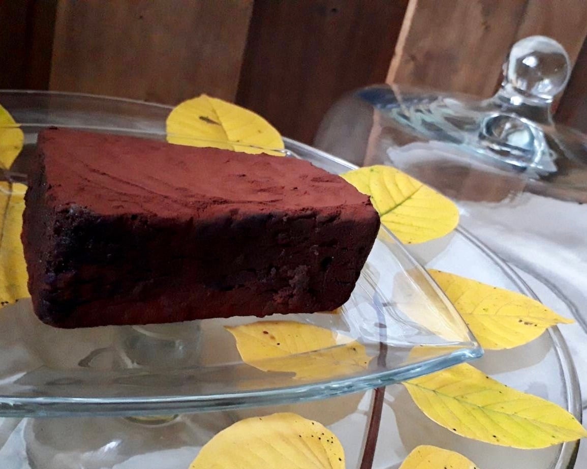 麹から甘酒を作った自家製甘酒酵母が全てを満たし、カロリーは低いのに濃厚なガトーショコラにしてくれました。