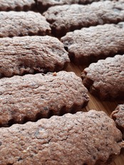 やや深入り中挽きコーヒー豆をたっぷりチョコクッキー生地に練りこんで焼き上げました。横長の形は食べやすく、バターなしの甘さも控えめなので何枚でも何枚でも・・・・・食べれます。