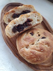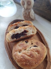 小麦粉・全粒粉・塩・カマヒハニー・甘酒酵母・なつはぜジャム・クランベリー・オレンジピール・レーズン