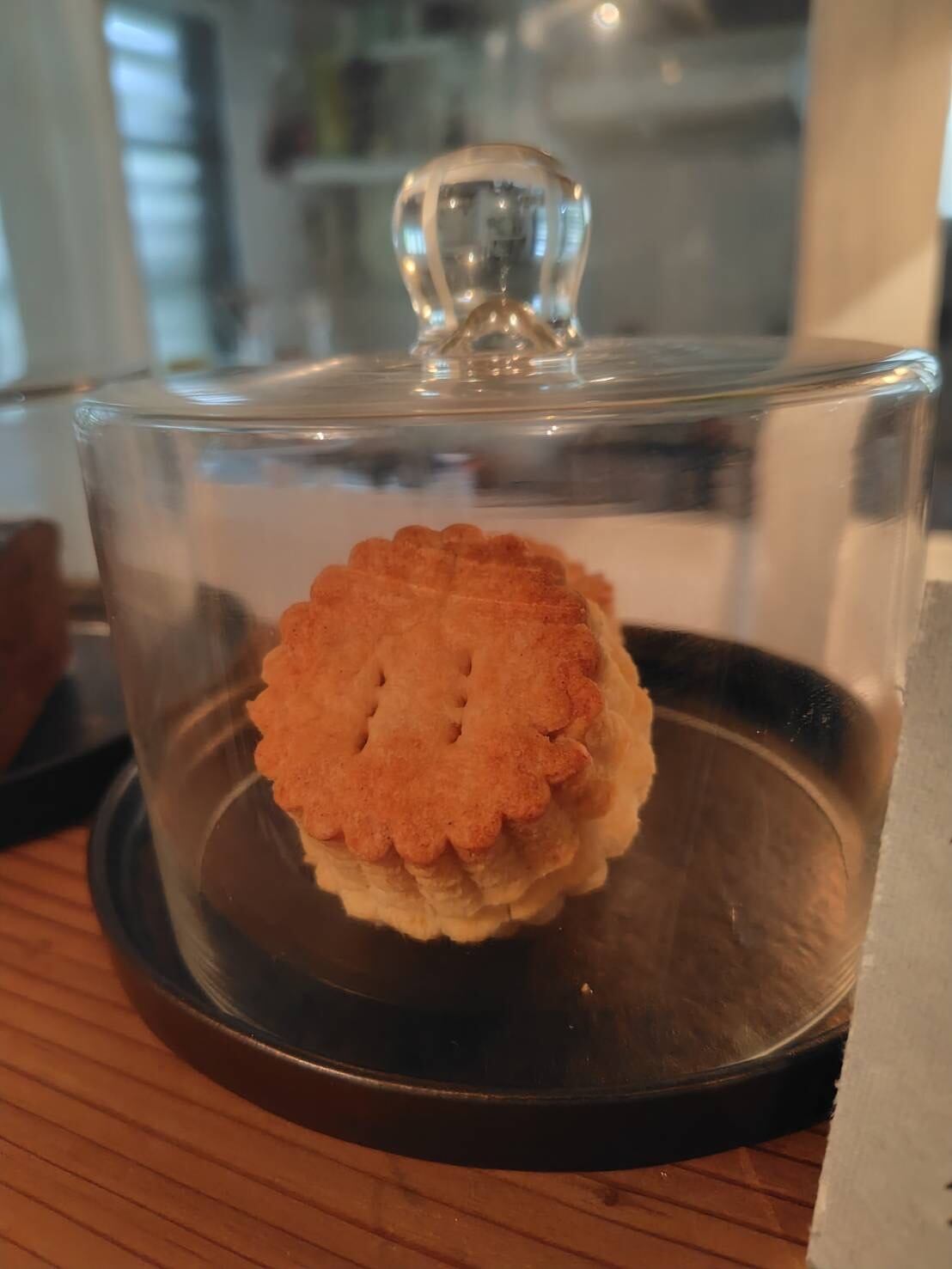 宇治抹茶を生地に練り込み、ホワイトチョコを挟みました。