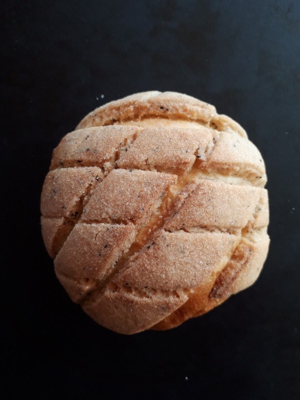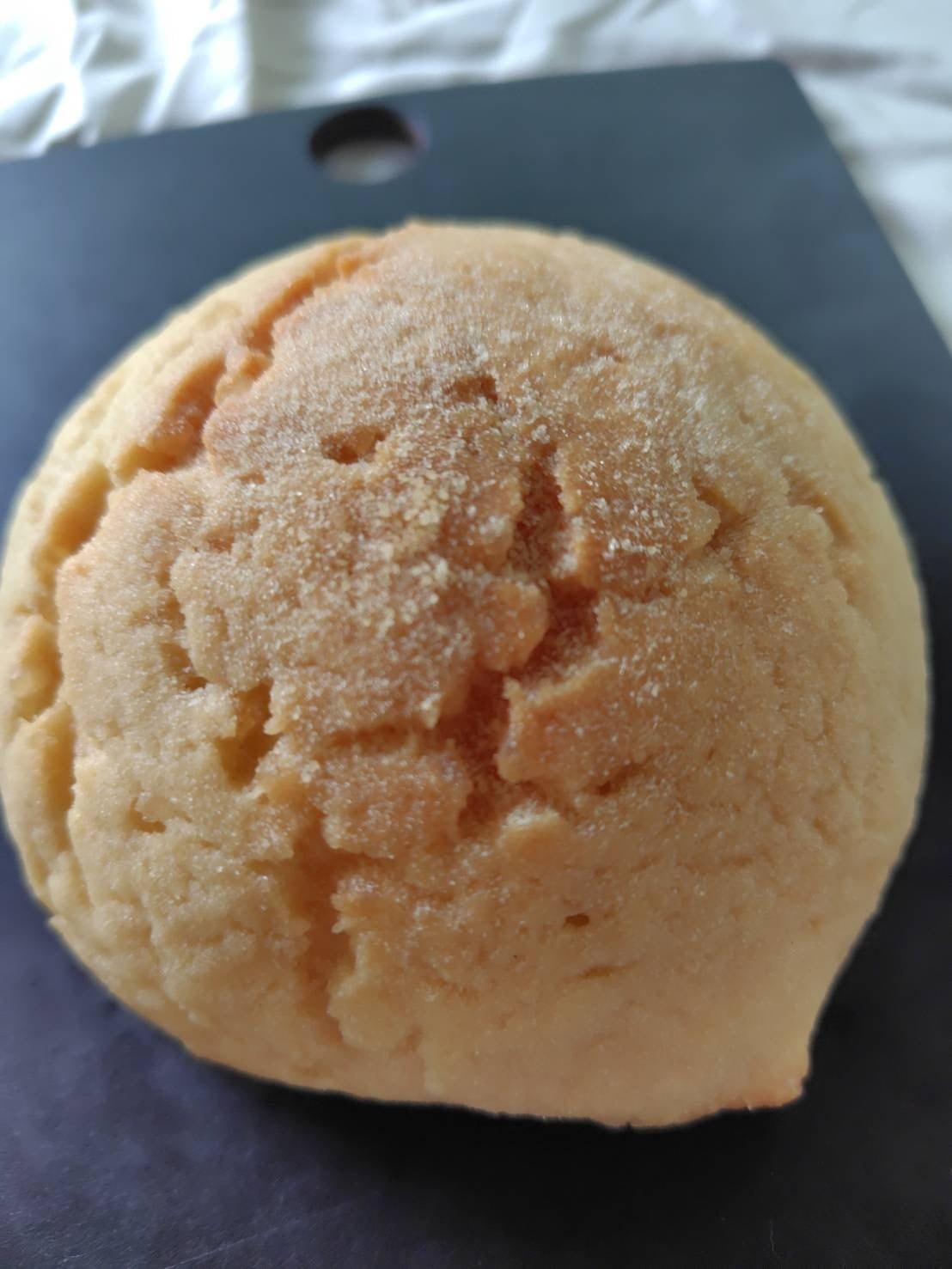 上のクッキー生地のサクッ感と下のパン生地のフワッ感がたまらない。mushamushaのクッキー生地は勿論バター・卵無しですがサクッ感をしっかり感じられ食べ終わった後の幸せ時間をお約束致します。
