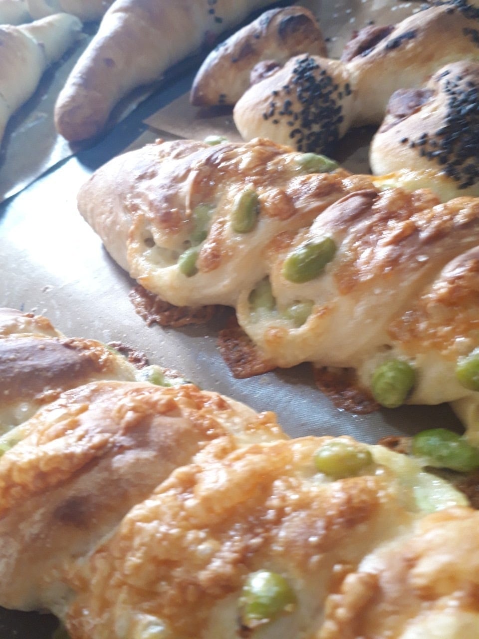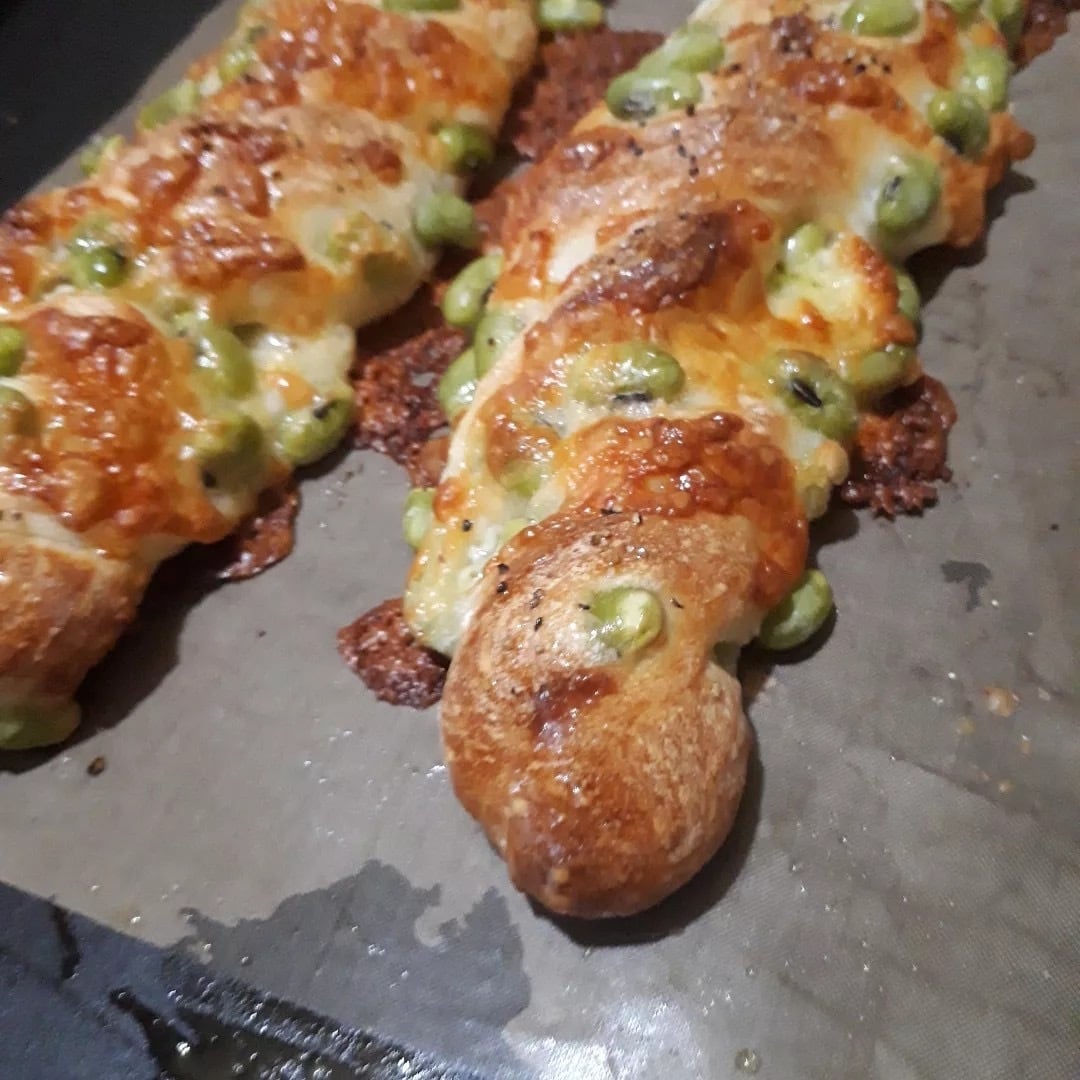 豆好きです。その中でも枝豆が好きです。枝豆によく似た味と食感のひたし豆を見つけた時はどれだけ喜んだことやら。そのひたし豆にチーズをのせてフランスパン生地に入れてみたした。隠し味でマルドンのお塩をパラパラと。豆好きの方はご賞味あれ!