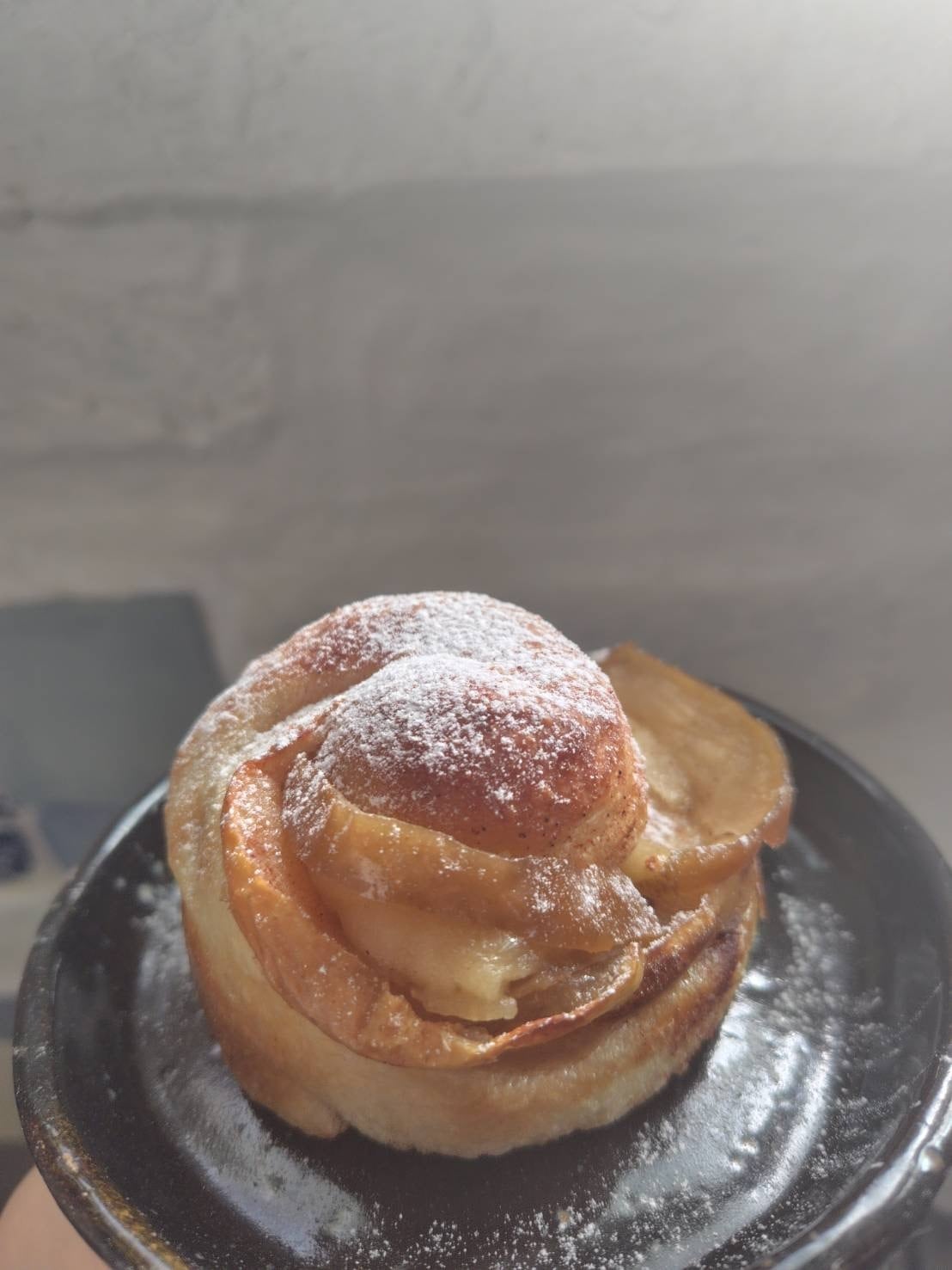 ちょっと造形的なパンを作ってみたくなる季節。テーブルの上にお花が咲いているイメージ。焼きりんごとスパイス(シナモン・グローブ)の最強コンビのちょっと可愛いパン作ってみました。